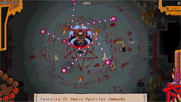 Hi everyone! One year ago I've opened a page here with a prototype made at the Global Game Jam. After a few months we decided we would make it a full game from scratch. Now we have released a free demo with three boss fights. Ray Bibbia is a hardcore mix between a Bullet Hell and a Typing Game. As you can see you have to dodge bullets and type the formula at the same time to exorcise Evil in various shapes. Between Boss Fights there are some investigative parts where Ray has to discover the next location of his quest and the story unveils.